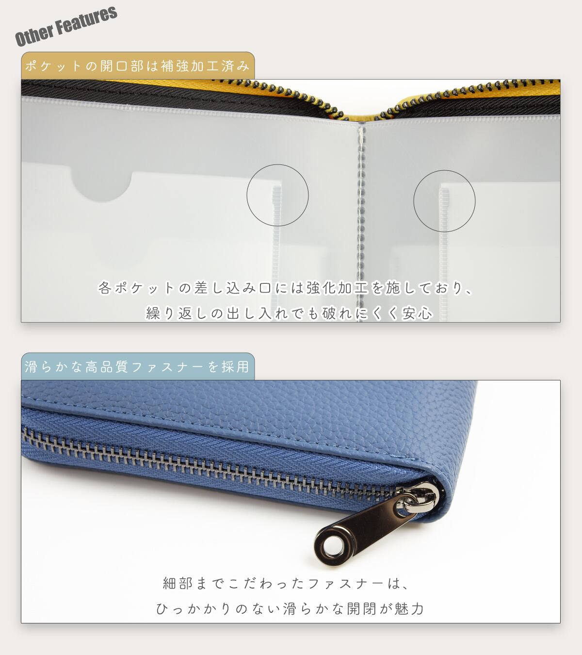 カードポケットは両面収納で、従来商品よりも2倍の収納力を備えました。